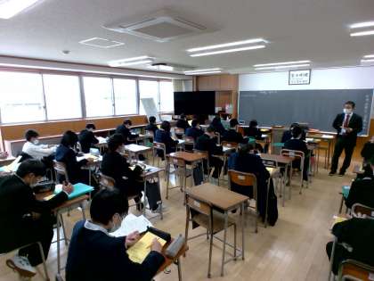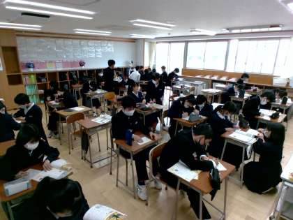 今日の授業風景です。グループ活動を通して、生徒の学び合いが多く見られました。とても良い姿ですので、クラスの仲間と協力して、継続していきましょう!