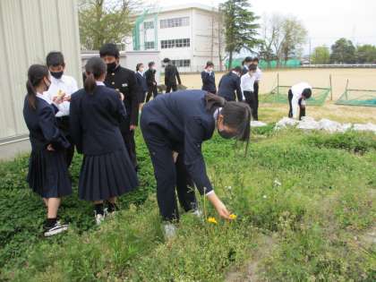 理科の授業では、タンポポを探しに校庭に出ました。今年は暖かい気温のためか、残念ながらタンポポはあまり咲いていませんでした…。