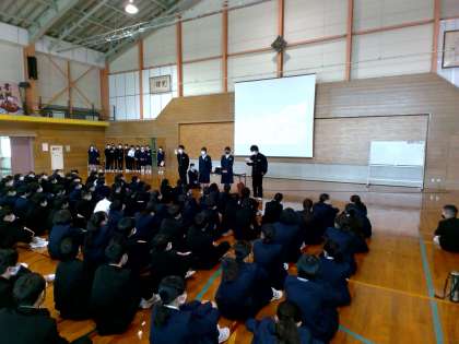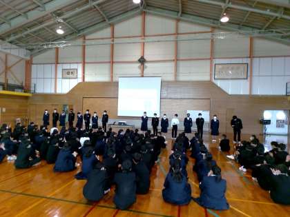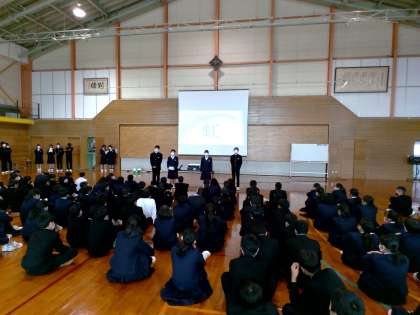 はじめに、前期学年生徒会メンバーの紹介を行いました。ひとりひとりが、意気込みを発表しました。その際に、温かい拍手をしている姿が見られてとても素晴らしかったです。