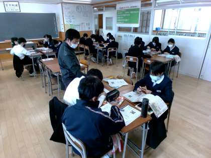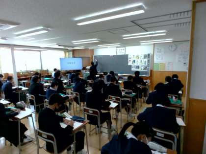 今日の授業風景です。体育の授業では、シャトルランを行いました。去年の自分の記録を更新しようと全力で取り組む生徒が多くいました。
