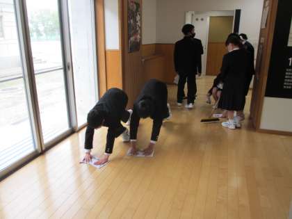 久しぶりの掃除でした。たくさんゴミを集め、終わったあとはぞうきんやほうきを丁寧に片付け、反省会までしっかりと取り組んでいます。