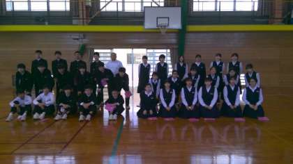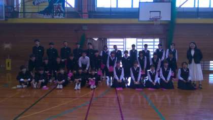 本日の3限に学年集会を行い、写真隊形を作る練習をしました。