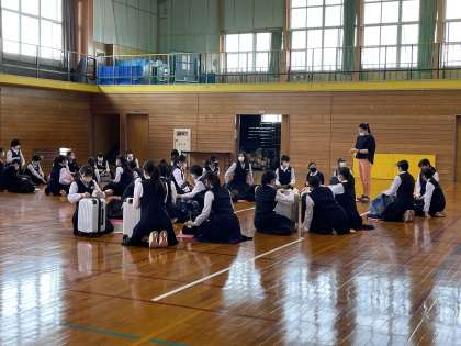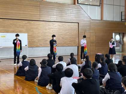 結団式では、学年代表が「修学旅行へ行けることに感謝して、岩中生として責任を持って行動しましょう」と話しました。校長先生からは「事前学習の成果を発揮し、色々な経験を通して本物をたっぷり味わい、思う存分楽しんできてください。そして、お家の方にたくさんの土産話を持って帰ってきましょう」とお話がありました。