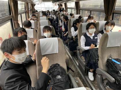 バスで宮島口へ向かいます!2組のバス内の様子です!