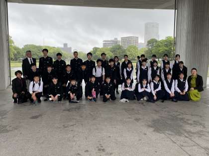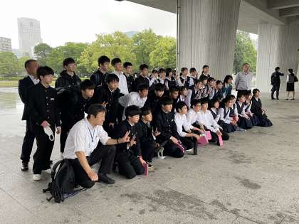 平和記念公園前にて集合写真を撮りました。