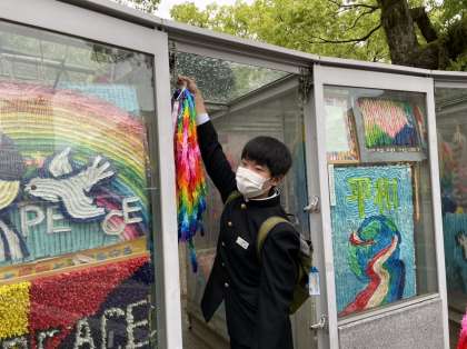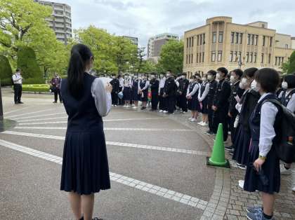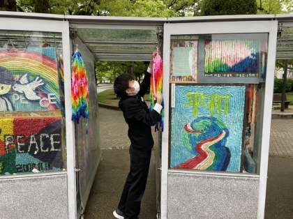 セレモニーでは黙祷を行い、平和の思いを込めて作った千羽鶴を奉納しました。