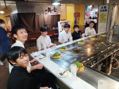 夕食にお好み焼きを食べ、今は就寝準備をしています。明日も元気に楽しみましょう。