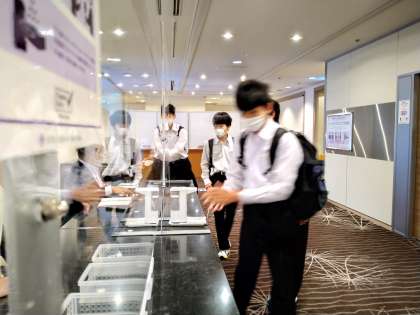 身支度を済ませ、朝食会場に集まってきています。みんな元気です。広島は曇り空です。