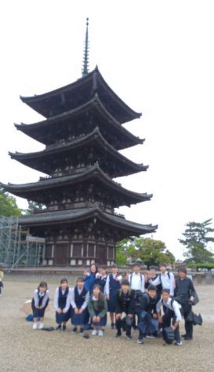 昼食後は興福寺に行き、国宝館を見学しました。写真上は興福寺五重塔前での記念撮影です。