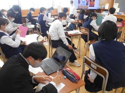 今日、明日は修学旅行の事後学習として、新聞やスライドに学んだことをまとめています。実際に見て、体験して、感じたことがたくさんあったと思います。19日(木)には成果学級発表会としてプレゼンテーションを予定しています。