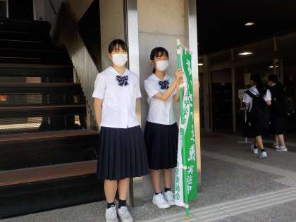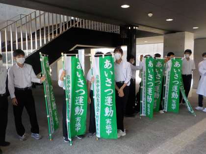 今朝のあいさつ運動は3年2組が担当しました。気持ちの良いあいさつが生徒玄関に響いていました。明日は3年1組が担当します。