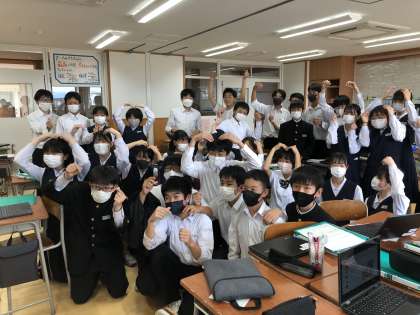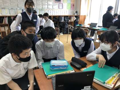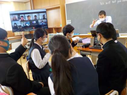 英語の授業で、ITプロジェクトを行いました。台湾の中学生とオンラインで交流しました。生徒がつくったスライドを使って、「富山県の食べ物」について、英語で紹介しました。一生懸命コミュニケーションををとる姿が、とても印象的でした。