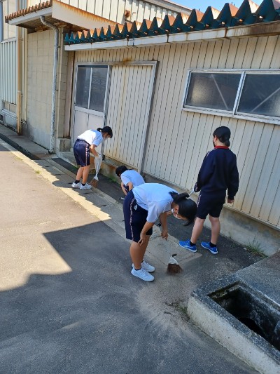 6月2日(木)午後から岩瀬校区の清掃活動を行いました。校舎周辺清掃の担当の生徒たちは、普段なかなかできない場所の清掃をしたり、花壇の花植を行ったりしました。