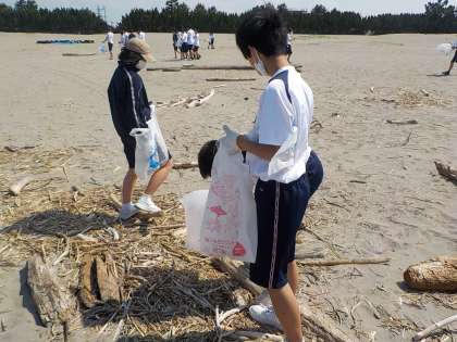 海上保安庁の方から、近年増加しているゴミの話もあり、みんなゴミ袋一杯にゴミを拾っていました。