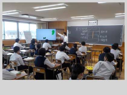 今日の社会の授業では、富山大学からいらしている教育実習生の先生の授業でした。先生の出身である東北地方についての学習で、生徒は興味深そうに聞いていました。3週間の短い期間ですので、たくさんコミュニケーションをとりましょう。