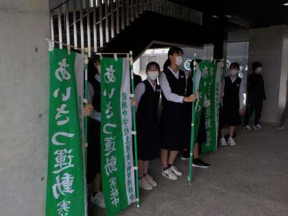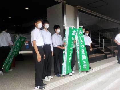 今朝のあいさつ運動の様子です。今日は3年1組が担当しました。