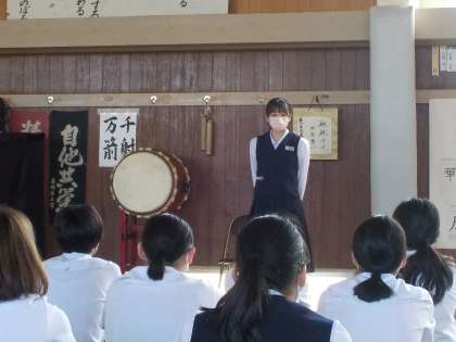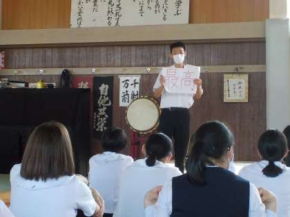 体育大会のリーダーオーディションを行いました。立候補者は、どんな体育大会にしたいか、そのために自分はどのように行動するかなど、体育大会への思いを語りました。演説後、団ごとに投票を行いました。