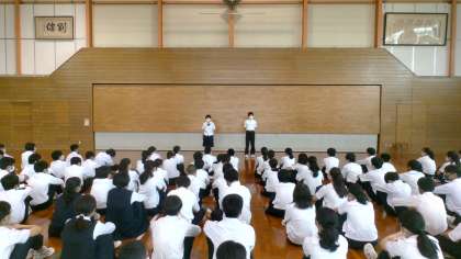 本日の6時間絵に体育大会へ向けての学年集会がありました。