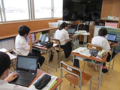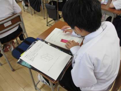 技術は2学期に作る木工作品のデザインを決めていました。早く決めた生徒は静かに自習していました。