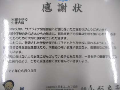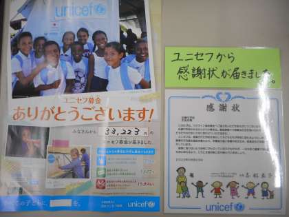 先日行った災害募金活動に対して、日本ユニセフ協会から感謝状が届きました。今後も、私たちが身の回りでできる社会貢献を見つけて、行動に移していきたいですね。