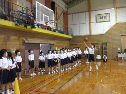 後半はドリブルリレー。上級生との対戦となりました。やはり上級生はうまかった…。1年生もシュートが決まると歓声を上げて楽しみました。