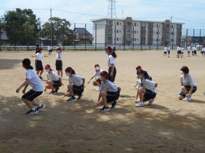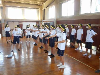 はじめて見る振り付けでしたが、1、2年生は早く覚えようとがんばって体を動かしていました。どの団も真剣な表情と楽しそうな表情が見られました。明日以降もがんばりましょう!