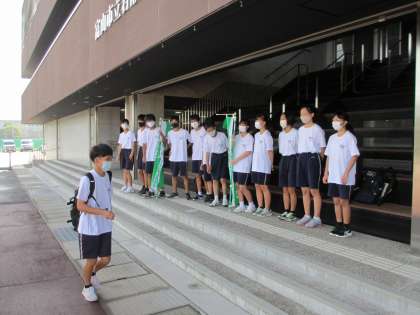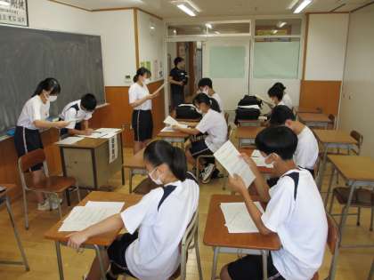 生徒玄関では、2学年生徒会のメンバーがあいさつ運動をしています。