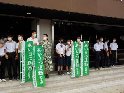 あいさつ運動の様子です。今日は3年3組が担当しました!