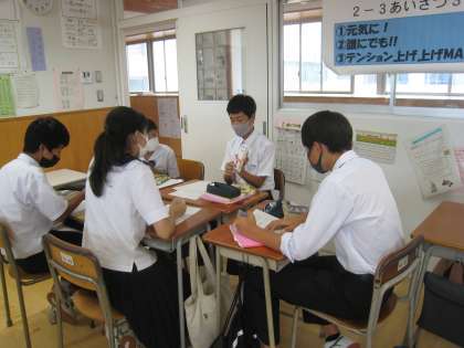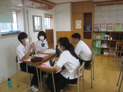 2年3組の国語の授業では、それぞれのオススメの本を紹介するビブリオバトルを行っていました。それぞれ選んできた本の魅力を班のメンバーに分かりやすく伝えていました。