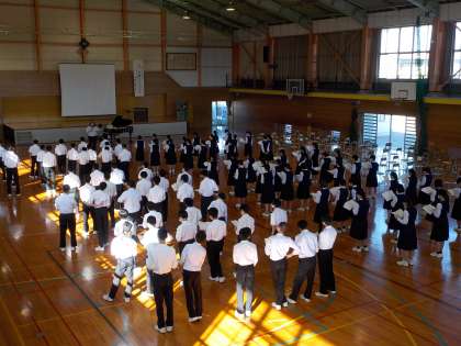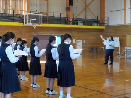 小林大祐さん(オペラ歌手)の講演会とコンサート後、3年生は合唱コンクールで歌う曲の歌唱指導をして頂きました。発声の方法など教えて頂き、今日の放課後練習で実践する姿が見られました。
