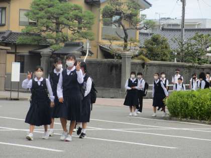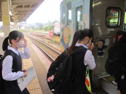 今回は、高岡から出発したら伏木でゴール、伏木出発グループはその逆となり、必ず乗り物での移動が入ります。慣れない電車に戸惑いつつ…これも社会勉強です。