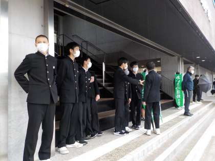 11月22日(火) 今朝は3年3組があいさつ運動を行いました。爽やかなあいさつが玄関に響いていました。