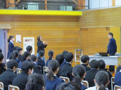 生徒たちも真剣に話を聞き、また教わった手話をさっそく実践していました。