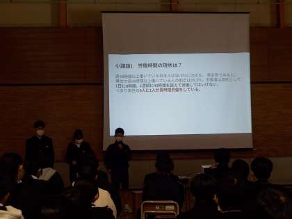 14歳の挑戦の後、今、社会で問題とされている働き方や、格差問題、ワークライフバランスなど、それぞれの項目でグループをつくり調べ学習を行いました。