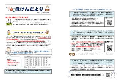 先月から富山市内でもインフルエンザの感染報告が聞かれるようになりました。しばらくインフルエンザの流行はなかったので、ほけんだよりには、インフルエンザに感染した場合の対応等について記載しました。また、新型コロナウイルス感染症の対応について、よく質問を受ける内容についても記載しましたので、ご一読いただければと思います。
