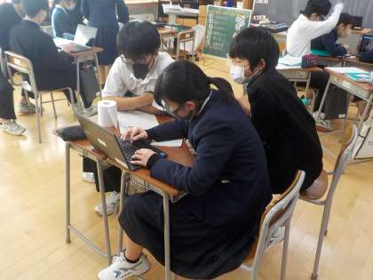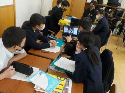 今日は、英語の時間に台湾の学生とオンラインで交流をしました。スライドを用いて、学校行事について紹介していました。積極的にコミュニケーションをとろうとする姿が多く見られとても素晴らしかったです。