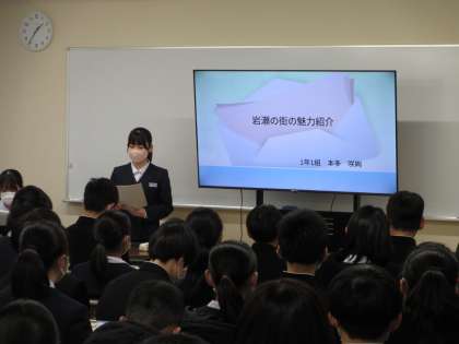 「岩瀬の古い街並みは、金沢にも負けないくらい魅力的。この街並みをもっとたくさんの人に紹介したい」とこれまでの学習をまとめていました。内容だけではなく、アシスタントの生徒との連携もばっちりでした。