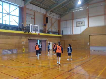 体育の授業では、バスケットボールをみんなで声をかけながら取り組んでいました。