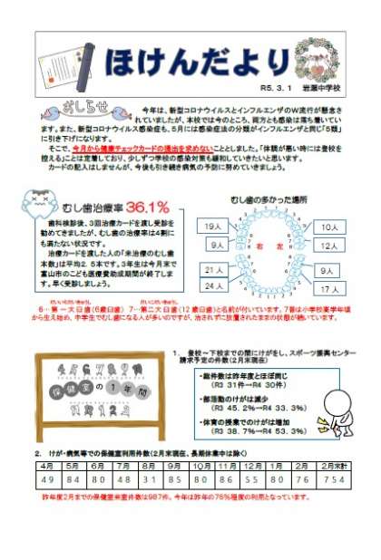 本日、お子さんを通じて「ほけんだより3月号」を配付しました。