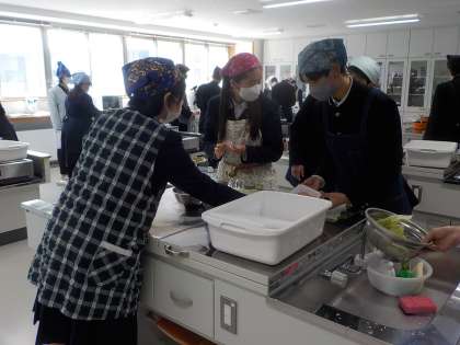 家庭科では、調理実習を行い、生姜焼きを調理しました。