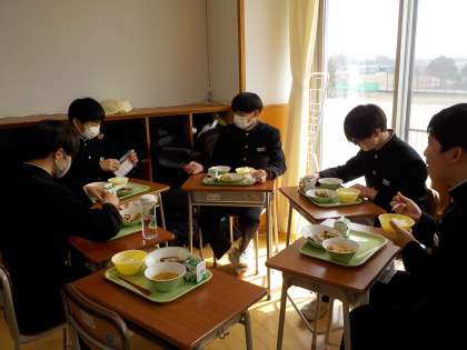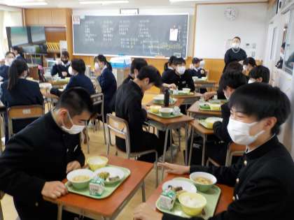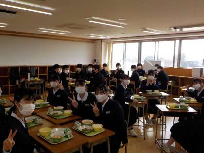 今日は、1年次の学級の担任とメンバーで給食を食べました。友達の顔を見ながら、いつも以上に笑顔が溢れる給食時間となりました。