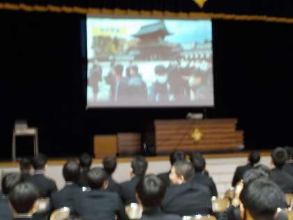 最後の学年集会では、学年の先生7名からお話がありました。3年間の思い出動画を見ながら懐かしんだり、寂しさがこみ上げてくる生徒もいました。