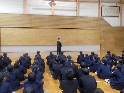 2学年スタッフから、春休みの過ごし方と、1年間を振り返って話をしました。次は、3年生になります。春休みに、3年生に向けての準備をしましょう。