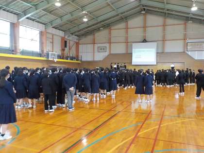 岩瀬中学校に関する2択クイズを全学年で行いました。