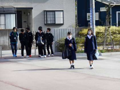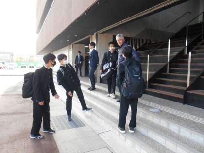 朝、登校してくる生徒たちの元気でさわやかなあいさつがとても気持ちよいです。先生を囲んで楽しく談笑する光景もみられました。