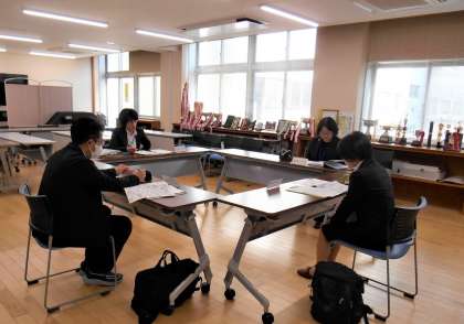 岩瀬中学校と岩瀬中学校区の3つの小学校の教務主任の先生方が集まって、今年度の小中連携の取組について協議しました。