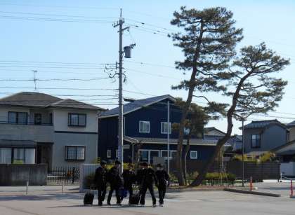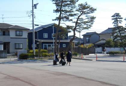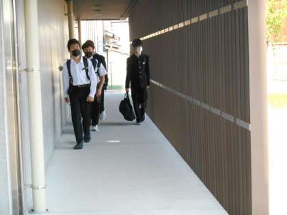 3年生は、荷物点検と積み込みを行うので、大きな荷物を持って登校してきています。