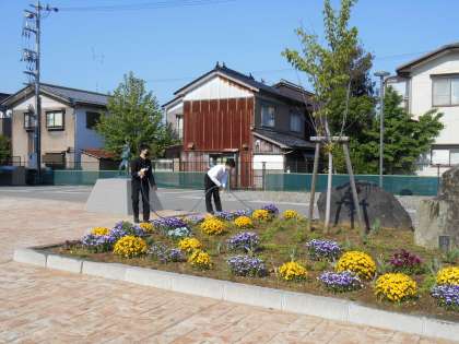 環境委員の生徒たちが前庭の木々や草花に水やりを行ってくれています。