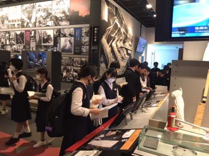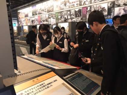 神戸市にある「人と防災未来センター」に来ています。みんなメモをとりながらしっかりと学んでいます。