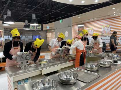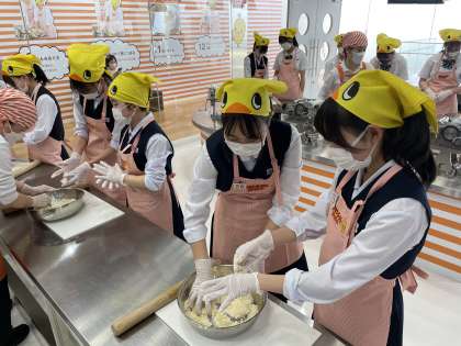 2組は、クラス別学習でカップヌードルミュージアムに行き、チキンラーメン作りを体験しました。